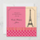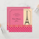Convite temático francês elegante e chique. Caracteriza um desenho da torre Eiffel em um rosa e em um fundo de creme. As listras e o teste padrão de bolinhas dão a este design um olhar moderno. Produtos de harmonização do achado neste loja.