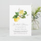 Este chá de panela moderno de limão é perfeito para um chá de casamento de primavera ou verão. O design mediterrânico rústico apresenta limões aquosos brilhantes e bonitos com flores brancas boêmicas e folhas verdes elegantes.
