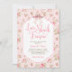 Chá de panela do Love Shack Fiancee. Fita de arco rosa pincelada e suave com delicado fundo de rosas femininos de cor d'água. Doce como a noiva. A escrita de caligrafia soletra a Love Shack Fiancee.