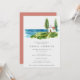 Chá de panela do oceano da Capela Costeira de Aquarela - Uma capela tênue, à beira-mar, senta-se numa montanha exuberante enquanto o mar flui por baixo. Que belas cores da praia. A parte de trás do convite é mostrada em terracotta, no entanto, você pode facilmente mudar a parte de trás para qualquer cor que quiser na ferramenta design. O chá de panela fará parte de uma coleção.