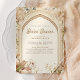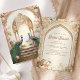 O chá de panela elegante convida com belos pavões e arcos antigos.