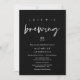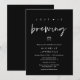 Anuncie a sua alegria para sempre em estilo com a nossa moderna carta de convite para celebração de chás de panela de tema branco preto (O amor está a criar). Com seu sofisticado design, ainda brincalhão, embutido com um pouco de coração amoroso e um ícone gráfico de vidro de cerveja, este convite certamente define o tom para um evento inesquecível. O cartão de convite apresenta um design moderno de escrita minimalista, acrescentando um toque de elegância do eterno à sua celebração. Projetado por TeeshaDerrick