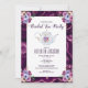 Convite de festas de chá chá de panela em flores e design de bule antigos com roxo roxo, burgundy e rosas ricas.