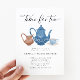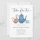 Chá de panela de tema da festa de chá russo com ilustração de um conjunto de chá. O texto diz "hora do chá".