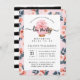Uma bela festa floral com estilo chic vintage chá, design de chá de panela de casamento com de casamento com faixa rosa pincelada vintage faux gold teacup com uma linda flor floral rosa-d-água. Os sotaques de ouro falsos são incorporados ao teacup rosa para criar um visual clássico de vintage. Um lindo padrão floral cor-de-água rosa-pincelada rosa-pincelada adiciona um toque elegante, clássico e feminino. No verso do chá de panela da festa do chá, há listras de aquarela pretas e bule de chá rosa bolinhas com flores que contrastam perfeitamente com o lado frontal do convite. Todas as ilustrações contidas neste chá de panela vintage da festa do chá floral são obras de arte originais desenhadas à mão pela Moodthology. Você pode personalizar o tamanho do texto, a cor do texto, a fonte e o layout para sua preferência de design pessoal.