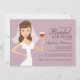 Uma bonito noiva de olhos castanhos torce a família e amigos com uma taça de vinho neste moderno tomam um Chá de panela. Perfeito para um chá com tema de vinho ou para uma noiva amante do vinho. Fundo púrpura lilás macio com texto marrom. Também disponível: