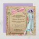 Fundo lindo do chique do vintage na verde azeitona pálida com rosas e em uma etiqueta do vintage com um arco cor-de-rosa da fita. Uma imagem de uma senhora da era 1920 rujir está a um lado. a imagem dos anos 20 retouched e foi colorida em azuis pálidos e lavendar. Facilmente customizável para que você adicione seus próprios detalhes.