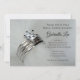 Convide convidados para uma festa pré-casamento honrando a noiva para estarem com o elegante Chá de panela dos Anéis de Casamento. Este clássico chá de casamento personalizado apresenta uma fotografia de perto de um anel de noivado de diamante redondo e um conjunto de bandas de casamento com um fundo de cinza leve.