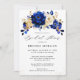 Elegante chá de panela do tema ouro azul real com buquê elegante de azul real, Marinho, ouro, flores rosa amarelas e folhas de eucalipto. Entre em contato comigo para obter ajuda sobre a personalização ou se você precisar de outro produto com este design.