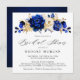 Elegante chá de panela do tema ouro azul real com buquê elegante de azul real, Marinho, ouro, flores rosa amarelas e folhas de eucalipto. Entre em contato comigo para obter ajuda sobre a personalização ou se você precisar de outro produto com este design.