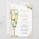 Este design bonito apresenta um buquê floral em branco e um vidro de champanhe de aquarela. Preencha suas informações sobre o modelo. Use o recurso "personalizar" para alterar as fontes ou o layout.