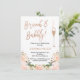 Este chá de panela de brunch e bubble apresenta uma falsa posição de ouro rosa e um copo de champanhe alto e elegante também em parte na textura falsa de folha de ouro rosa. Eu adicionei um arranjo floral na base do design com algumas folhas falsas de ouro rosa. A parte de trás do convite apresenta uma imagem de aquarela quase cor de pêssego que corresponde à disposição floral na parte frontal. Mais designs de convite neste tema estão disponíveis na loja. Este chá de panela de folha de rosa de ouro cheio e borbulhante está pronto para ser personalizado.