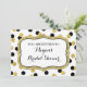 Convites de chá de panela personalizados em branco com padrão de confete preto e dourado e detalhes do padrão de efeito de brilho (note que o ouro é apenas efeito fotográfico).
