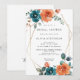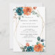 Chá de panela floral de laranja lacrado e queimado. Elegante chá de panela floral de aquarela com lindas flores pintadas à mão em aquarela dispostas num buquê em tons de laranja ferrugem e de palha escura com uma estrutura geométrica de ouro perfeita para elegante verão e chá de panela de outono. Você pode personalizar o texto, o estilo da fonte, a cor e o tamanho em frente e atrás do convite. Itens correspondentes disponíveis.