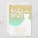 Um moderno, bonito chic e elegante falso chá verde-relva de menta com chá de panela de blocos coloridos de menta turquesa convite de festas com padrão de ouro ombre desaparecendo sobre um fundo de menta com um elegante vestido branco de noiva. Perfeito para um chá de panela de princesa, perfeito para ela, a moderna que adora padrão e brilho modernos
