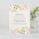 O chá de panela floral elegante e moderno apresenta flores aquosas em tons suaves de rosa e ouro, com folhas botânicas esverdeadas e verdes. Personalize com seus detalhes de chá de panela em letras negras elegantes.