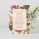 Este chá de panela apresenta um fundo cor-de-rosa com folhas verdes tropicais e flores amarelas e cor-de-rosa, além de bordas falsas em ouro.