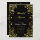 Um chá de panela elegante em preto e ouro. Rochas decorativas, flores e rolhas em uma folha de ouro falso ao redor das bordas. Correspondência de texto dourado em uma fonte de script. Todo o texto e a cor de fundo podem ser alterados de acordo com suas preferências. O reverso tem um padrão decorativo complementar em folha de ouro falsa também. Um convite na moda para um chá de panela. Esta é parte de uma suíte de casamento preto e ouro com o mesmo design. Se você quiser isso em outro produto ou precisar de ajuda para personalizar isso, entre em contato comigo.