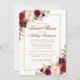 Convites Chá de panela Dourado Floral Elegante Burgundy