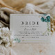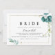 Este chá de panela de noiva tropical floral de ouro é perfeito para um chá de casamento moderno. O design apresenta predominantemente folhagem verde-aquosa pintada manualmente, acoplada a flores douradas, enfeitando uma elegante moldura geométrica.