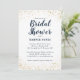 Chá de panela elegante com brilhos dourados e marinho azul-água ombre. Este modelo já tem textos que contêm todas as informações necessárias para o seu evento. Os textos são facilmente personalizáveis on-line.