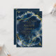 Vocês vão adorar este design azul de aquarela marinho com círculo geométrico dourado e brilho. Excelente para o seu local de casamento!