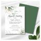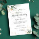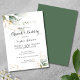 O primavera floral elegante e moderno, berço e chá de panela de Verão, apresenta um buquê de aquarela pastel macia, folha de ouro e folhagem em tons de branco de marfim, com folhas botânicas esmeraldas verdes e esmeraldas. Personalize este bonito brunch floral do ouro e jardim verde e este convite à espuma com os detalhes do seu chá de panela em letras elegantes acentuadas com caligrafia de estilo manuscrito. Belo design botânico neutro em gênero para a noiva ser. Flores verdes e brancas são perfeitas para chás de panela e casamentos.