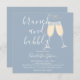 Um chá de panela elegante e elegante, com óculos de champanhe e nome de script de assinatura, este convite para na moda pode ser personalizado com suas informações em caracteres chicos em um fundo azul empoeirado. Projetado por Thisnotme©
