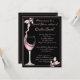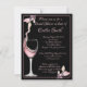 Este é um chá de panela com trabalho de arte de torrada floral, que consiste em uma taça de vinho com vinho esparramando nela, aparada com flores. O cartão está disponível em várias combinações de cores. O inverso inclui o nome da futura noiva e a grande arte floral do coração.