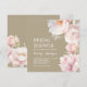 Linda ilustração aquática de um buquê rosa de pénia sobre fundo esticado para o chá de panela com tema primavera.