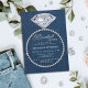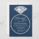 Um chá de panela moderno, elegante e clássico com fundo denim e anel de diamante (estes são efeitos digitais) e tipografia moderna em branco pérola. Um design de "denim e diamantes" chico para uma futura noiva que ama faíscas e denim glam.