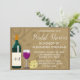 Chá de panela elegante com vinho e queijo vintage tuheme. Convites de festas modernos, ricos e elegantes, de vinho contemporâneo e provandos de queijo! Castanho arenoso com garrafa de vinho, amostra de vinho e queijo suíço, com fundo de vinha suave. Personalize on-line com os detalhes do evento.