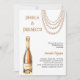 Um convite moderno, na moda e glamouroso para um Chá de panela de Pérolas e Prosecco. Um fundo branco com colar de pérolas e um frasco de ouro de Prosecco. O nome é escrito com um moderno estilo escrito à mão. Personalize e adicione os detalhes da sua festa.