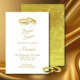 Elevem a vossa ocasião com este elegante Chá de panela de Nascentes com um fundo de cor Dourada. A frente é simples com alianças de casamento. O script elegante é fácil de mudar para personalizar seu design pessoal. Facilmente alterada para sua informação. Ver a coleção Casamento Simples de Anéis Elegantes