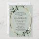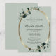 Elegante Eucalyptus Gold Sage Chá de panela Verde... Nosso luxo chá de panela botânico apresenta uma falsa estrutura oval metálica dourada embelezada com folhas verdes de sábio e eucalipto abarrotado de esmeraldas criando uma borda natural para o texto do convite dentro... sobre um delicado fundo de sábio. Todo texto de exemplo pode ser facilmente revisado com seus próprios detalhes no modelo de personalização.
