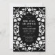 Ponha o tom para uma celebração sofisticada com este charmoso chá de panela preto e branco elegante, com um delicado quadro floral branco desenhado à mão num estilo romântico de arte folclórica. O fundo negro na moda moderno destaca a intricada arte botânica branca, criando um olhar belamente elegante, mas artístico, que se encaixa em uma ampla gama de temas nojentos, desde o chic moderno à elegância rústica. Este modelo é totalmente personalizável online. Basta clicar para personalizar com os detalhes do evento, atualizar fontes ou até mesmo mudar a cor de fundo e ajustar a matiz do quadro floral para corresponder ao seu estilo exclusivo ou à paleta de casamento. Escolha entre a impressão profissional em papel luxuoso para um convite de qualidade de manutenção ou faça o download instantâneo de uma versão digital de alta resolução, ideal para o planejamento de última hora ou compartilhamento via e-mail ou texto para uma opção ecologicamente consciente. Moderno, gracioso e fácil de editar, este convite fará uma impressionante primeira impressão que seus hóspedes não esquecerão.