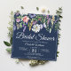 Chá de panela azul-marinho elegante e flores silvestres. Personalize-o com os detalhes do seu partido para celebrar a noiva-a-ser.