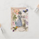 Uma ilustração de 1835 da revista francesa de moda "Petit Courrier des Dames" forma a peça central desta bela colagem de vintage. Ao redor das bordas estão beija-flores, roupas de rendas e um berço. Texto personalizável. Convite para pegar os olhos.
