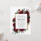 Design apresenta pedônia de aquarela e elementos florais de rosa em tons de vermelho e burgundy sobre verde botânico de eucalipto. Modelo também contém uma caixa dourada impressa para um layout elegante. A tipografia exibe um layout moderno com texto preto. Exibir o link de coleção nesta página para localizar produtos correspondentes no conjunto de casamento.