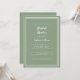 O design verde e chá de panela branco, simples e moderno, apresenta um simples design minimalista contemporâneo com uma dupla borda de quadros em branco sobre um fundo verde-rústico. Personalize o design de chá de casamento de noiva com seus detalhes em letras de tendências e scripts em branco. As costas combinam em verde sólido. Para obter melhores resultados, substitua os detalhes do modelo com seus próprios detalhes, deixando espaço entre os parágrafos como no exemplo e use todas as letras minúsculas quando especificado. Envie um email para invitationsuites@gmail.com com perguntas ou solicitações personalizadas.