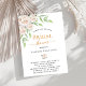 Fundo branco, decorado com flores brancas, peões e verde. Personalize e adicione o nome da noiva a ser e os detalhes da festa. Letras pretas e ouros coloridas.