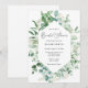 Chá de panela honrando a noiva! Design apresenta um quadro de aquarela eucalipto e verde. Personalize com suas informações ou clique em "Clique para personalizar mais" para editar estilos de fonte, tamanho e cores.