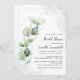 Chá de panela de aquarela Eucalyptus Script Floral Invitation com um moderno design botânico minimalista em fundo branco com tipografia popular que você pode facilmente editar. DICA: veja abaixo outros itens de eventos de preparação de casamento e pré-casamento, incluindo convites de chá de panela, cartas de agradecimento, etiquetas de champanhe, etc., para este design!