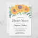 Convide familiares e amigos para um Chá de panela com este elegante convite decorado com girassóis de aquarela, eucalipto e folhagem em tons de amarelo, verde e ouro. Personalize este convite com os seus detalhes. Porque nós criamos a nossa trabalho de arte, você não encontrará esta imagem exata de outros designers. Original Watercolor © Michele Davies.