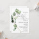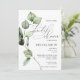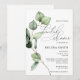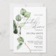 Este adorável convite apresenta uma aquarela sonhadora de um delicado ramo de eucalipto. Uma fonte serif clássica é acentuada pela nossa caligrafia elegante exclusiva. Perfeito para o seu evento teórico, jardim ou verde. Disponível em várias formas e tipos de papel.