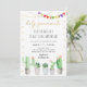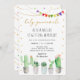 Este convite divertido apresenta suculentos de aquarela com sotaque dourado e sinalizadores de fiesta colorida.