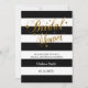 convites de chá de panela 5x7. Black e White Stripes Elegantes com letras douradas. Este convite de noiva será um sucesso para o seu convidado. Personalize a frente e a parte traseira com os detalhes do evento, estilo da fonte, cor da fonte. 100% personalizável. Pronto para Preencher a(s) caixa(s) ou Clique no botão PERSONALIZAR TI para alterar, mover, excluir ou adicionar qualquer texto ou gráfico. Feito com gráficos vetoriais de alta resolução para um impressão profissional. NOTA: (Todos os designs de produtos zazzle são "impressões", a menos que indicado de outra forma) Se tiver alguma dúvida sobre este produto, contacte-me no endereço siggyscott@comcast.net ou visite o link da minha loja: http://www.zazzle.com/designsbydonnasiggy?rf=238713599140281212 (Copiar e Colar), terei todo o prazer em ajudar. Obrigado pelo apoio e parada na minha loja -DesignsbyDonnaSiggy