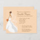 Uma morena, uma noiva de olhos castanhos espreita desesperadamente sobre seu ombro sobre um fundo com padrão de cor de pêssego. O teu texto cor de laranja está à volta dela. As informações do registro vão atrás. Disponível em cores alternativas com uma variedade de cores de pele/cabelo/olho para a noiva. Correspondência, cartas de agradecimento, favores e postagens disponíveis. Entre em contato comigo na minha loja se preferir um fundo diferente.