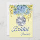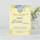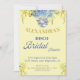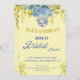 Marque a cena de uma comemoração temática do Disco. Azul e Amarelo são as cores de fundo para este design Chá de panela personalizado elegante de bola Disco floral. Altere facilmente as informações para o seu próprio convite personalizado. design de casamento chá de panela.