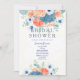 O Chá de panela romântico de casamentos florais romântico de coral de aquarela azul e verde pintado com a mão rústica é perfeito para qualquer cerimônia clássica e sofisticada. Este design refinado e deslumbrante é perfeito para o casal de tendências e na moda. Personalize este design com sua própria mensagem e informações personalizadas. Todas as designs são impressas.